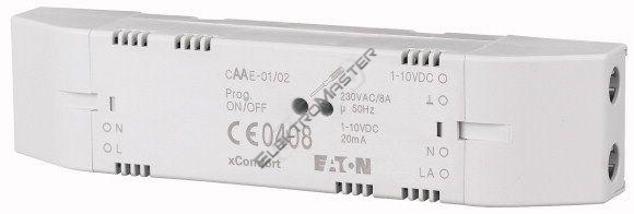 Analogový aktor přijímá signál, spíná relé a řídí řídicí napětí 1–10 V DC pro stmívače a elektronické předřadníky zářivek. Napájí se ze sítě. Přístroj se montuje do instalační krabice, podhledu nebo přímo do zářivek.