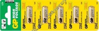 GP 23AE (V23GA, MN21, A23), 12V jmenovitá kapacita: 55 mAh (při zátěži 20 kOhm) rozměry: průměr 10,22 x 28,5 mm hmotnost: 7,9 g prodejní obal: 5 ks, blistr GP BAT. SPEC. 23AE 5BL