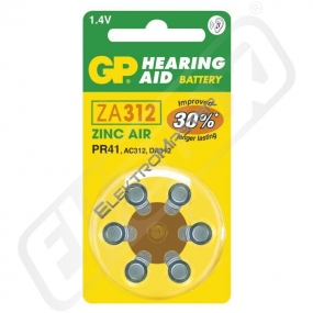GP ZA312 (DA312X, PR41, V312, 312A), 1,4V jmenovitá kapacita: 160 mAh (při zátěži 1,0 kOhm) rozměry: průměr 7,9 x 3,6 mm prodejní obal: 6 ks, blistr GP BAT. NASL. ZA312 6BL