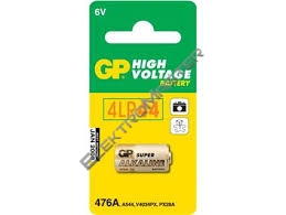 GP 476A (4LR44, PX28A, V4034PX), 6V jmenovitá kapacita: 105 mAh (při zátěži 6 kOhm) rozměry: průměr 13,0 x 25,2 mm hmotnost: 10 g prodejní obal: 1 ks, blistr GP BAT. SPEC. 476AF 1BL
