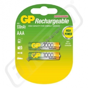 HR03 (mikrotužka, AAA), 1,2 V minimální kapacita: 930 mAh rozměry: průměr 10,5 x 44,5 mm prodejní obal: 2 ks, blistr GP BAT. NAB. HR03 1000 2BL