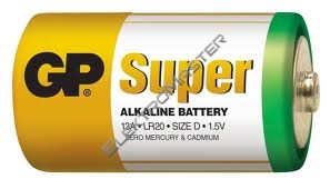 LR20 (velké mono, D), 1,5 V rozměry: průměr 34,2 x 61,5 mm prodejní obal: 2 ks, fólie GP BAT. SUPER LR20 2SH