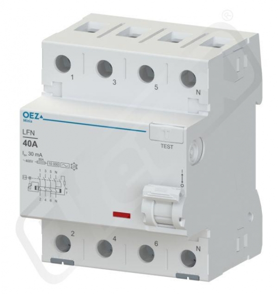In 40 A, Ue AC 230/400 V, Idn 300 mA, 4pól, Inc 10 kA, typ A-S