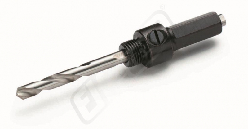 Aufnahmeschäfte komplett mit Führungsbohrer Bestellnr. 20 7590 und Außengewinde, passend zu Lochsägen aus HSS-Bi-Metall 9,5 mm Sechskant, ohne Mitnehmer für Lochsägen 14 - 30 mm Durchmesser