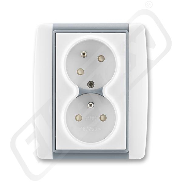 Element# | Zásuvky | Zásuvka dvojnásobná bezšroubová, s clonkami, s natočenou dutinou | bílá / ledová šedá || IP 40. 16 A, 250 V AC