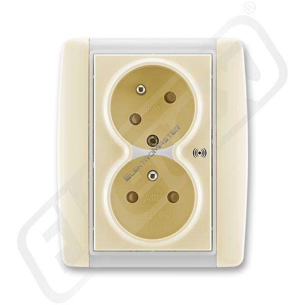 Element# | Zásuvky | Zásuvka s ochranou před přepětím, dvojnásobná bezšroubová, s akustickou signalizací | slonová kost / ledová bílá || Akustická signalizace poruchy. IP 40. 16 A, 230 V AC