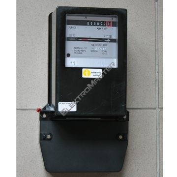 Třífázový repasovaný indukční elektroměr na kříž, přímé měření do 60A, vynulovaný číselník, provedení neověřené