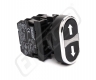 Tlačítko RMQ16 připravené k použití s rozměrem čelní strany 18x18 mm. Vhodné kontaktní bloky je třeba objednat samostatně.