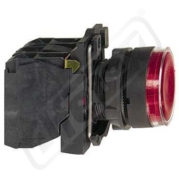 červená ovládač stiskací prosvětlený lícující ?22 s návratem 1Z+1V 24V. řada výrobků: Harmony XB5 - typ produktu nebo součásti: kompletní prosvětlené tlačítko - označení přístroje: XB5 - materiál objímky: plast - průměr pro montáž: 22 mm - další informace o ovladači: s plnými čočkami - složení a typ kontaktů: 1 Z + 1 V - funkce kontaktu: závisle spínající - připojení - svorky: šroubové svorky: