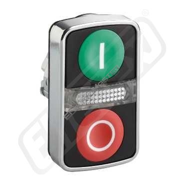 Zelená lícující/červená lícující ovl.hlavice dvoutlač.se signálkou ?22 s popisem. řada výrobků: Harmony XB4 - kompatibilita: integrovaná LED - označení přístroje: ZB4 - průměr pro montáž: 22 mm - provedení ovladače: 2 lícující tlačítka - 1 centrální signálka - operators description: zelená 'I' - červená 'O'. Výhody: .. Aplikace: .. Výhody: