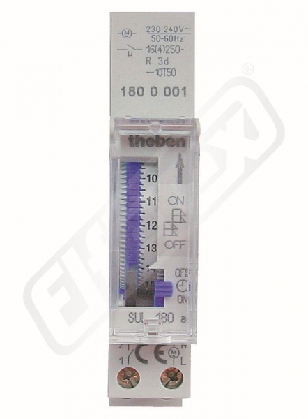 Reiheneinbau-Zeitschaltuhr mit 3 Tage Gangreserve, Breite 1 TE, 24-Std.-Segment-Prog., kürzeste Schaltzeit 15 Min., Dauerschalter EIN/AUS