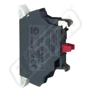 Jednoduchý kontaktní blok pro hlavu ?22 1Z bezšroubové svorky. řada výrobků: Harmony XB4, Harmony XB5 - typ produktu nebo součásti:kontaktní blok - označení přístroje: ZBE - složení a typ kontaktů: 1 Z - funkce kontaktu: závisle spínající - typ kontaktního bloku: jednoduchý - použití kontaktů: standardní kontakty. Výhody: .. Aplikace: .. Výhody: