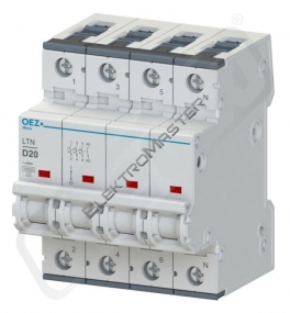 In 2 A, Ue AC 230/400 V / DC 216 V, charakteristika C, 3+N-pól, Icn 10 kA