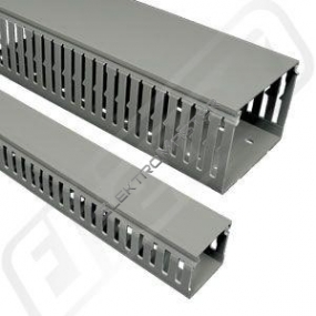 Rozváděčový kanál RK 40X60 LD, tmavě šedý, 2 m, karton. Optimální zavírání, lehká montáž a demontáž, pevně fixovaný kryt, snadné vylomení žebra u dna kanálu. Dodáván včetně víka.