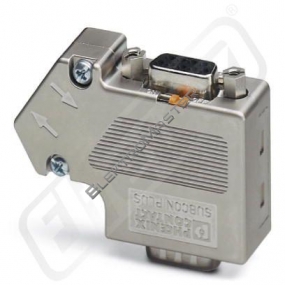 Zástrčka D-SUB, 9pólová, kolík, kabelový přívod pod úhlem 35°, systém sběrnice: PROFIBUS DP až 12 MBit/s se zásuvkou Pg-D-SUB k připojení programovacího přístroje, zakončovací odpor připojitelný přes posuvný přepínač, obsazení kontaktů: 3, 5, 6, 8; šroubové svorky