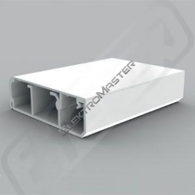 Lišta podlahová LP 80x25, bílá, 2 m, karton. Určena pro montáž do rohu mezi podlahou a stěnou.