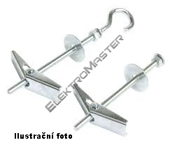 Lustrhák s kotvou pro upevnění do sádrokartonu a dutých stěn obecně. Sklopné úchyty umožňují prostrčení montážním otvorem a následné roztažení integrovanou pružinou. Segment je zakončen závitem M4 pro zavěšení svítidla apod.