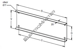 Přístrojový můstek PMK. Rozměr ŠxV: 490x70mm, upevňovací rozteče CxD: 466x25mm. Vyrobeno z pozik plechu tl. 2 mm.