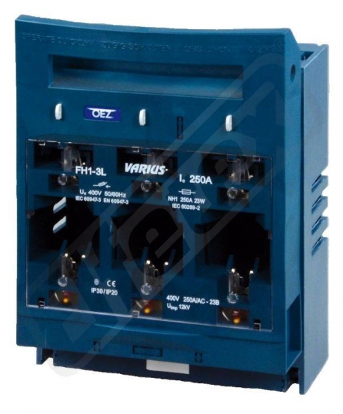Ie 250 A (325 A/ZP1), Ue 690 V, 3pól. provedení se světelnou signalizací stavu pojistek, M10 - šrouby přiloženy