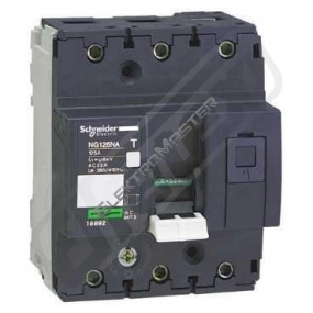Odpínač NG125NA, 3p, 125A. řada: Acti 9 - označení výrobku: NG125 - typ produktu nebo součásti: odpínač - označení přístroje: NG125NA - aplikace se spínačem: zapnutí a vypnutí pod zatížením, distribuce (rozvod) - popis pólů: 3P - kategorie použití: AC-22A vyhovuje IEC 60947-3, AC-23B vyhovuje IEC 60947-3, AC-22B vyhovuje IEC 60947-3.