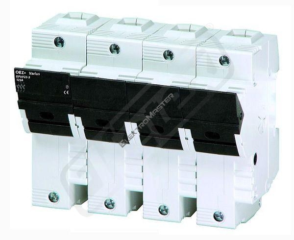 Ie 125 A, Ue AC 690 V/DC 440 V, pro válcové pojistkové vložky 22x58, 3+N-pól, bez signalizace, náhrada za OPVA22-3N