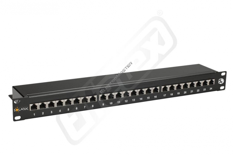 "Stíněné patch panely Solarix # CAT5E jsou osazeny moduly s duální IDCsvorkovnicí 110/Krone. Svorkovnice je z důvodu snadného zakončení kabeluoznačena podle standardu T568A i T568B, a to za pomoci barev párů ačíselného označení jednotlivých vodičů přímo na desce plošných spojů(liché číslo označuje vždy polobarevný vodič a sudé plně barevný).Součástí těla panelu je vyvazovací lišta, která slouží k přehlednémuuspořádání a pevnému uchycení datového kabelu a rovněž uzemňovací vodič,který spolehlivě propojí stínění kabeláže se zemněním v rozvaděči.Stíněné patch panely Solarix # CAT5E splňují a rovněž převyšujípožadavky na komponenty kategorie 5E definované ve standardech TIA/EIA568, EN 50173 a ISO 11801. Panely jsou pevné, spolehlivé a poskytujídlouhou životnost. Standardní barva patch panelu je černá. Velikost vdatovém rozvaděči je 1U.Read more: http://www.intelek.cz/product.jsp?artno=24064806
