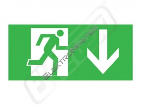 pro typ HELIOS - rozměr 125x250mm - únikové značení (panáček, šipka dolů vpravo) - 25 m distanční vzdálenost