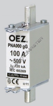 Un AC 500 V / DC 250 V, velikost 00, gG - charakteristika pro všeobecné použití, Cd/Pb free