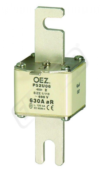 Un AC 690 V / DC 440 V, aR - charakteristika pro jištění polovodičů pouze proti zkratu, rozteč 110 mm, pro šrouby M10, postříbřené kontakty, Cd/Pb free