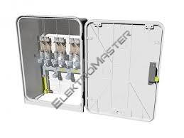 Kabelová přípojková skříň pro připojení tří odběrných míst do 160 A, s ukončením přívodních vodičů na W svorkách a vývodních vodičů na H svorkách. |
