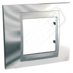 Unica Top, krycí rámeček, jednonásobný, cromo/aluminium. označení řady: Unica Top - typ produktu nebo součásti: krycí rámeček. Výhody: .. Aplikace: Obytné a kancelářské budovy Zapuštěné nebo povrchově montované instalace..