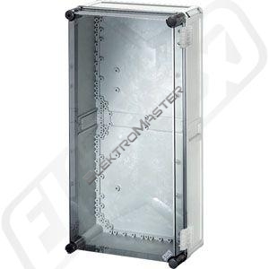 Prázdná rozvodnice k samostatné montáži se závesným víkem. Skríne musí být vhodné k montáži do venkovního prostredí, je treba respektovat klimatické vlivy a dopady na provozní prostredky. Spodní cásti a víko skríne z odolného polykarbonátu, bez halogenu a silikonu barva RAL 7032, víko s pruhlednými rychlouzávery pro ovládání nástrojem. Chování pri horení podle DIN VDE 0471 cást 2 zkouška žhavou smyckou 750?. Maximální nasákavost 10 mg podle DIN 53473. Ochranná opatrení: s ochrannou izolací (trída ochrany II) Výrobek: HENSEL Mi-rozvádece Samostatná skrín s pruhledným, závesným víkem Krytí: IP 65 podle IEC 60 529 Krytí: IP 65 podle IEC 60 529