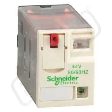 Miniaturní paticové relé, Zelio RXM, 4 V/Z, 48 V AC, 6A, s LED. řada výrobků: Zelio Relay - název řady: miniaturní - typ produktu nebo součásti: paticové relé - označení přístroje: RXM - složení a typ kontaktů: 4 Z/V - signalizace stavu LED: ano - typ ovládání: uzamykatelné test. tlačítko - koeficient využití: 20 %. Výhody: