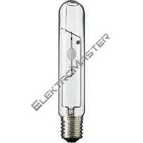 Halogenidová výbojka s keramickým hořákem a čirou tubulárnívnější baňkou, použitelná v exteriérech a poskytující příjemné bílé světlo