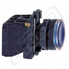 Modrá ovládač stiskací prosvětlený lícující ?22 s návratem 1Z+1V 220...240V. řada výrobků: Harmony XB5 - typ produktu nebo součásti: kompletní prosvětlené tlačítko - označení přístroje: XB5 - materiál objímky: plast - průměr pro montáž: 22 mm - další informace o ovladači: s plnými čočkami - složení a typ kontaktů: 1 Z + 1 V - funkce kontaktu: závisle spínající - připojení - svorky: šroubové svorky :
