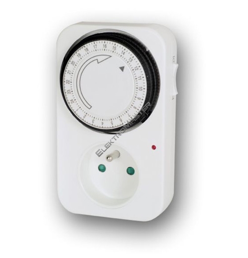Mechanický časový spínač, výkon 3500W, napětí 230V~50Hz, proud max 16A denní programování |