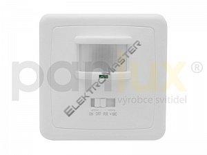| Senzor pro montáž místo vypínače, potřebuje hlubokou montážní krabici, uživatelsky vyměnitelná pojistka, úhel záběru 140°, rozměr 75x75x47mm, připojitelný na L vodič (L vstup a L výstup) může reagovat i na zvukový signál, IR kontrukce senzoru, dosah 12m informační zelená LED dioda, maximální zátěž 500W žárovka, 200W zářivka. |