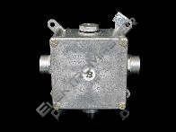 7116 B - KRABICE S IP KRYTÍM KOVOVÁ, konfigurace P16, barva KOV, balení - 1/12 ks - krabice pro rozvody s ocelovými závitovanými nebo kovovými ohebnými trubkami, 3 vývodky a jedna zátka rovnoměrně rozloženy na bocích krabice, svorkovnice není součástí krabice, osazena svorka pro provedení instalace v sítích TNS