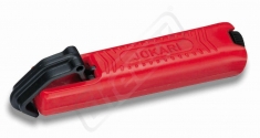 | Kabelmesser ohne Klinge zum Aufschlitzen und Entmanteln von Feuchtraumkabeln, 2-Komponenten-Werkzeug mit griffiger Softgrip-Einlagefür optimale Handhabung und Daumenmulde 8 - 28 mm? Sowohl die Spitzen der innenliegenden Kabelmesser wie auch die Schneiden der aufgesetzten Bügelklingen sind titannitrid-beschichtet. Bei ca. 500 °C wird der Schneideklinge in der Vakuumkammer dem PVD-Verfahren Titannitrid aufgedampft. Durch die verringerte Oberflächenstruktur und die extrem hohe Härte werden hervorragende Gleiteigenschaften und eine hohe Verschleiß- bzw. Abriebfestigkeit erreicht. TiN-beschichtete Messer können mit wesentlich höherer Haltbarkeit und Schnittleistung eingesetzt werden. |