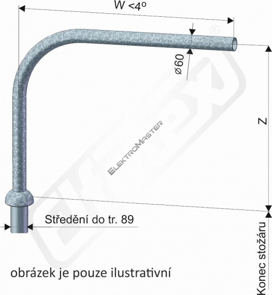 "Výložník k osvětlovacím stožárům, UZB 2-1500/60 žár.zinek TYPY STOŽÁRŮ: Výložníky typu UZB se používají pro stožáry typu UZL, UZM . POVRCHOVÁ ÚPRAVA: -žárové zinkování dle normy DIN EN ISO 1461 -žárové zinkování s vrchním nátěrem dle tabulek RAL PROVEDENÍ: -jedná se o obloukový výložník, který se vsazuje dovnitř vrchního stupně dříku a fixuje se ve zvolené pozici pomocí 4 šroubů M12 na vrchním stupni dříku stožáru -1-4 ramenné, délka vyložení v závislosti na výšce stožáru -v rozebíratelném stavu podle délky a úhlu vyložení CERTIFIKACE A SHODA: Výrobek svým charakterem odpovídá souboru norem ČSN EN 40 a splňuje požadavky dle CSN EN ISO 3834. Jakostvýrobku je řízena dle EN ISO 9001:2001. "