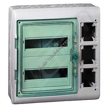Modulární Kaedra s rozhraním, 2x12mod.. typ produktu nebo součásti: rozvaděč odolný proti povětrnostním vlivům - typ rozvaděče: rozvodnice pro modulární přístroje s rozhraním - příslušenství v dodávce skříně: 2 svorkovnice 22 otvorů, 2 kabelové pásky, 1 držák svorkovnice, 1 deska pro zásuvky 65 x 85, 3 desky pro ovládací tlačítka, 2 označovací sady. Výhody: Rozvodnice Kaedra se vyznačují vysokou odolností proti chemickým a atmosférickým látkám a odolností proti UV záření. Velkou výhodou je možnost pospojování rozvodnic, čímž vzniká možnost rozšíření instalací.... Aplikace: ..