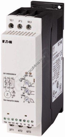 Typy řady DS7 jsou spouštěče s měkkým náběhem k měkkému spouštění třífázových motorů s normální četností spouštění pro rozsah výkonů od 4 do 200 A (1,5 kW až 110 kW při 400 V). Spínací přechodové jevy a podíly stejnosměrného proudu při spuštění jsou účinně potlačeny a zaručují stejnoměrný náběh motoru. Speciální způsob ovládání (asymetrické řízení zapalování / patent Eaton) pro funkci spouštěče nepoužívá stejnosměrné podíly proudu, které za normálních okolností vznikají ve dvoufázovém spouštěči s měkkým náběhem. Díky tomuse potlačí vznik eliptického točivého pole, které vede k nestejnoměrnému náběhu motoru a zbytečně tuto dobu prodlužuje.Rotační chování DS7 je díky tomu srovnatelné s třífázovým řízeným spouštěčem s měkkým náběhem. Ve všech verzích lze výrazně zredukovat lampy a topné zátěže (bez uzemněného bodu hvězdy) a navíc se při krátkodobé náběhové rampě při měkkém spouštění (min. 1 s) výrazně snižuje zapínací proud. Doby rampy a počátečního napětí lze nastavit pomocí potenciometru.Doby mohou dosahovat od 1 do 30 s (start) resp. 0 až30 s (stop), počáteční napětí (počáteční krouticí moment) lze nastavit v rozsahu 30 až 100 % síťového napětí.Typy DS7-34-MX mají vnitřní překlenovací relé, které po skončení náběhu automaticky sepne a přemostí vnitřní tyristory. Díky této funkci se bez dalších opatření dosahuje stupně rádiového odrušení „B“. Typické oblasti použití spouštěče s měkkým náběhem jsou pohony čerpadel – měkkým náběhem se předchází tlakovým rázům. Mechanické zatěžování celého zařízení klesá a tím roste životnost. Vzduchové pohony – díky měkkému náběhu nekloužou žádné klínové řemeny, což zamezuje předčasnému opotřebení. Díky tomu klesají provozní náklady a zvyšuje se životnost zařízení. Dopravní pásy – dopravní pás se rozeběhne měkce a bez trhnutí. Dopravovaný materiál nepadá a samotný pás je mechanicky chráněn a díky tomu vydrží déle.
