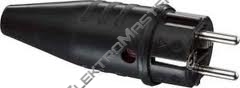 | Celopryžová zástrčka s ochranným kontaktem, 2pól. + zemnění, 16 A 250 V, podle DIN 49440/441, barva černá, druh krytí s ochranou proti odstřikující vodě IP44, s kovovým rychlouzávěrem, značka kladiva a dva zemnicí systémy podle CEE 7/VII |
