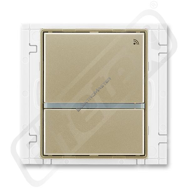 Time#, Time# Arbo | Bezdrátové radiofrekvenční (RF) ovládání | Vysílač RF signálu, nástěnný, dvojtlačítkový | šampaňská || Při stisknutí jednotlivých částí hmatníku se vyšle odlišný kód (lze tak nezávisle ovládat jeden nebo dva přijímače). Napájení: Li článek 3 V, typ CR 2450 (je součástí dodávky). Počet ovládaných kanálů: 2. Provozní kmitočet vysílače: 868 MHz. Dosah: až 150 m (ve volném prostoru). Automatické omezení doby vysílání: 60 s. Pracovní teplota: #20 °C až +55 °C. Vysílání a pokles napájecího napětí jsou indikovány LE diodou.
