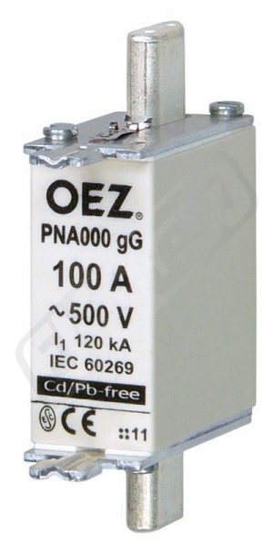 Un AC 500 V / DC 250 V, velikost 000, aM - charakteristika motorová, pouze proti zkratu, Cd/Pb free