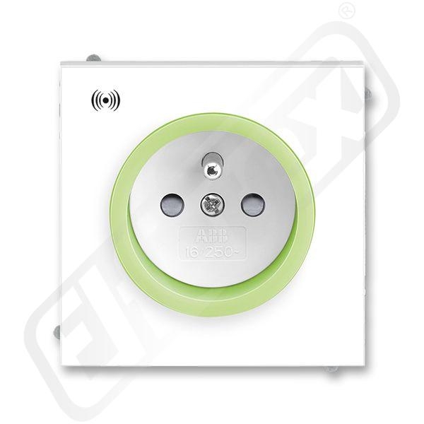 Neo#, Neo# Tech | Zásuvky | Zásuvka s ochranou před přepětím, jednonásobná, s akustickou signalizací | bílá / ledová zelená || Akustická signalizace poruchy. IP 40. 16 A, 230 V AC
