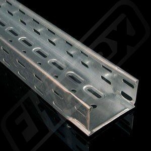 Kabelový žlab s integrovanou spojkou KZI 60x100 z plechu tloušťky 1,00 mm v povrchové úpravě sendzimir, děrovaný, opatřený embosy pro zvýšení pevnosti a tuhosti.