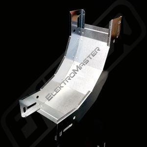 | Stoupající oblouk 90° pro kabelové žlaby o rozměru 100x500 mm v povrchové úpravě sendzimir, slouží k přechodu trasy do vertikálníhosměru v úhlu 90° |