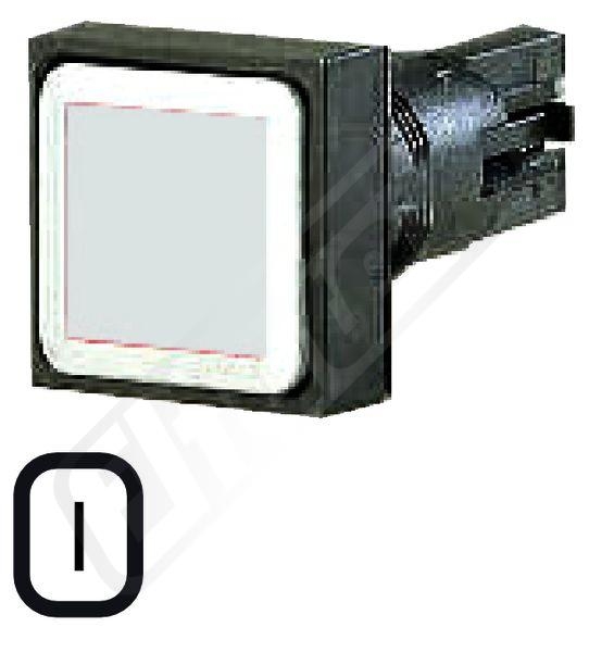 Tlačítko RMQ16 připravené k použití s rozměrem čelní strany 18x18 mm. Vhodné kontaktní bloky je třeba objednat samostatně.