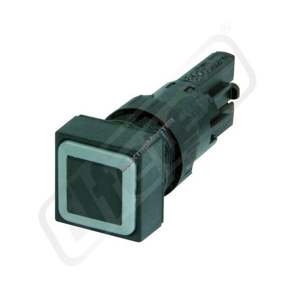 Tlačítko RMQ16 připravené k použití s rozměrem čelní strany 18x18 mm. Vhodné kontaktní bloky je třeba objednat samostatně.